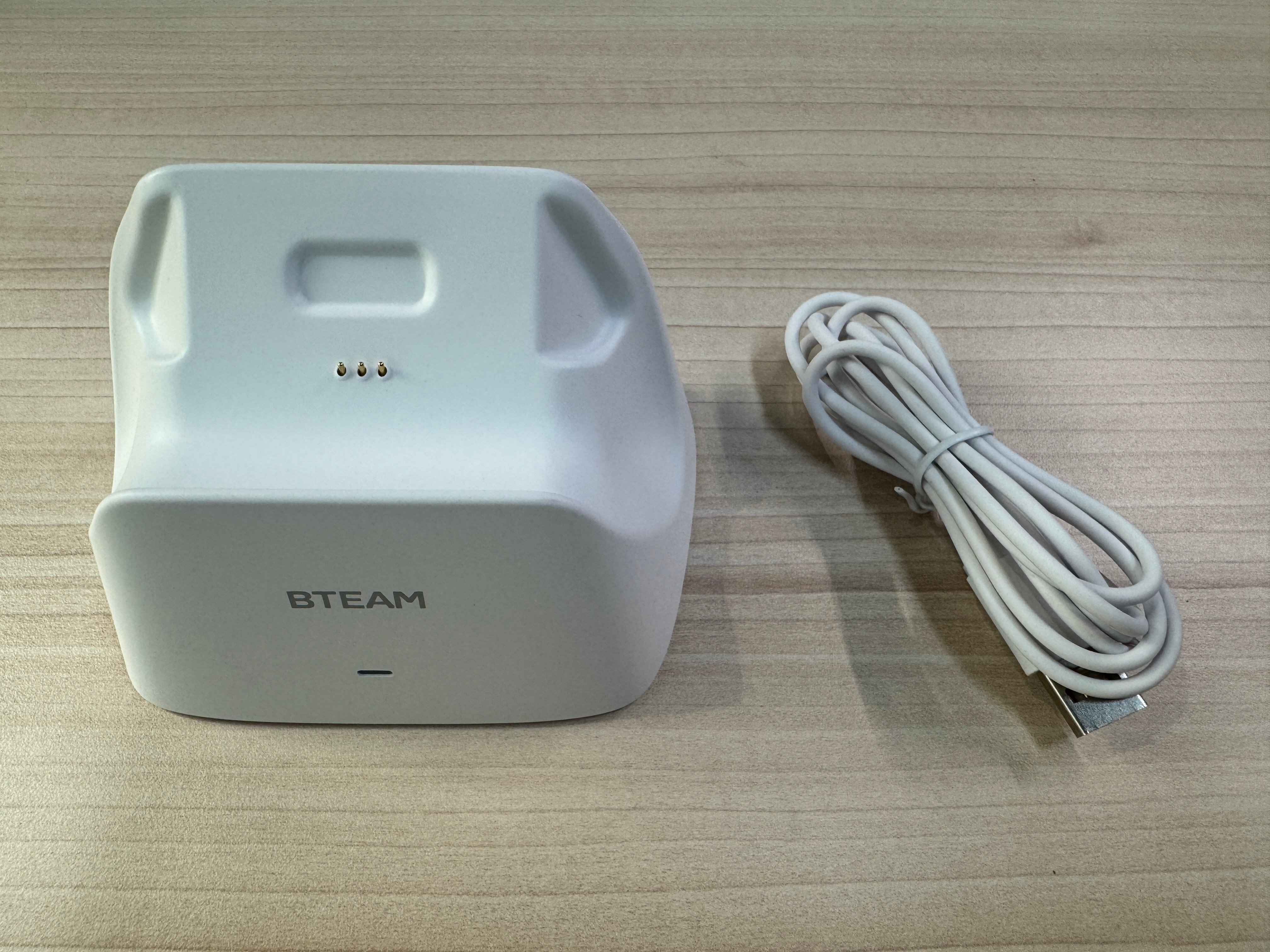 “充電底座”也有套膜保護防止撞擊、刮傷,而旁邊附加的線材“Type-A to Type-C 充電線”1 條,則比起手把提供的還要再長近一倍,長約 1.5 公尺。