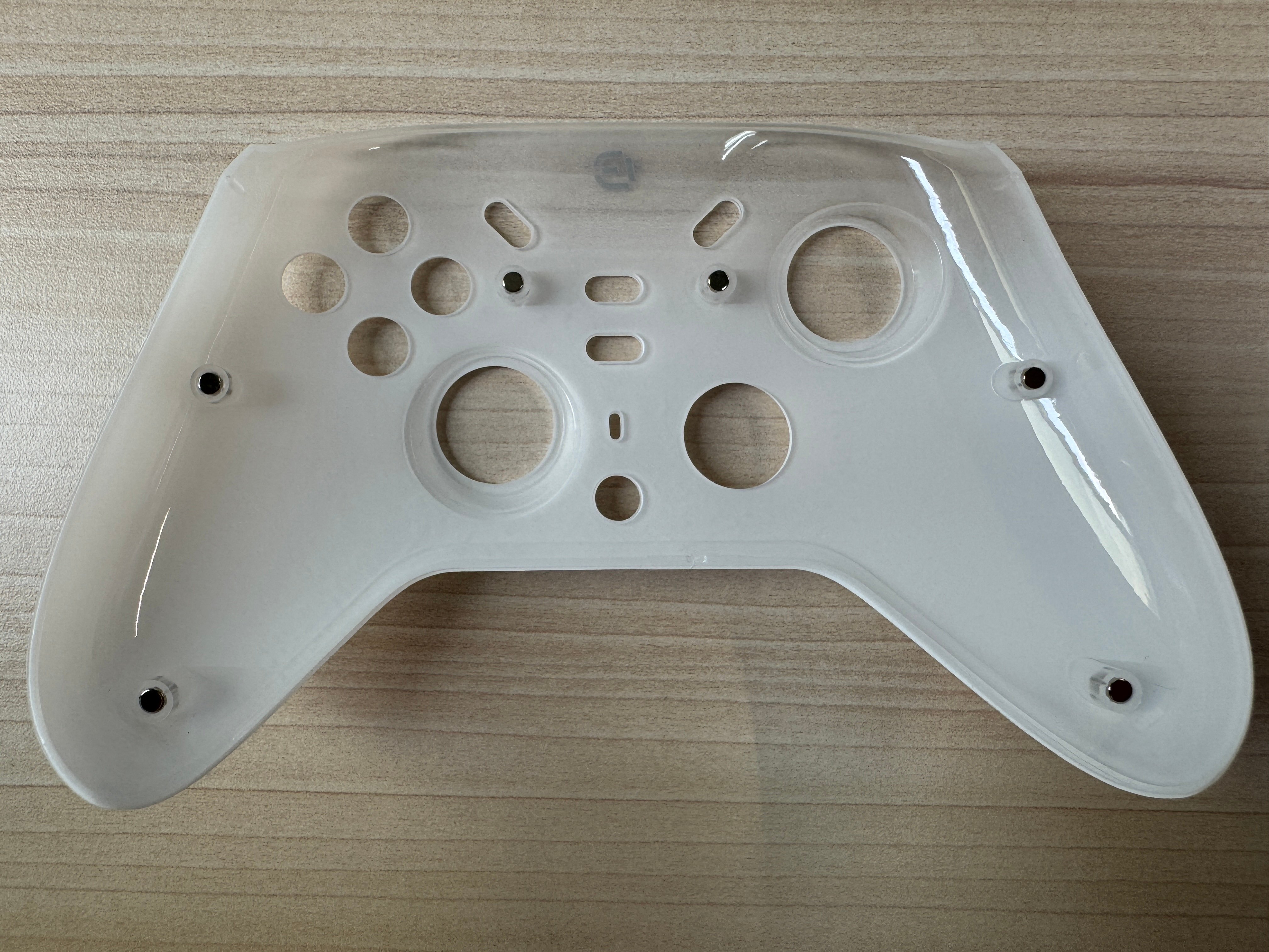 《沛影手把》的 ABXY 按鍵觸感清脆、俐落不黏鍵,手感相當出色,再加上採用了高透光性的材質,當底部燈光亮起後,微微散發出的泛光便很顯質感;肩鍵(LB/RB)、背鍵、功能鍵(檢視/目錄/Fn/Home/Turbo)按下去也都有段落分明的「喀喀」聲,回饋感明顯,整體表現還不錯。