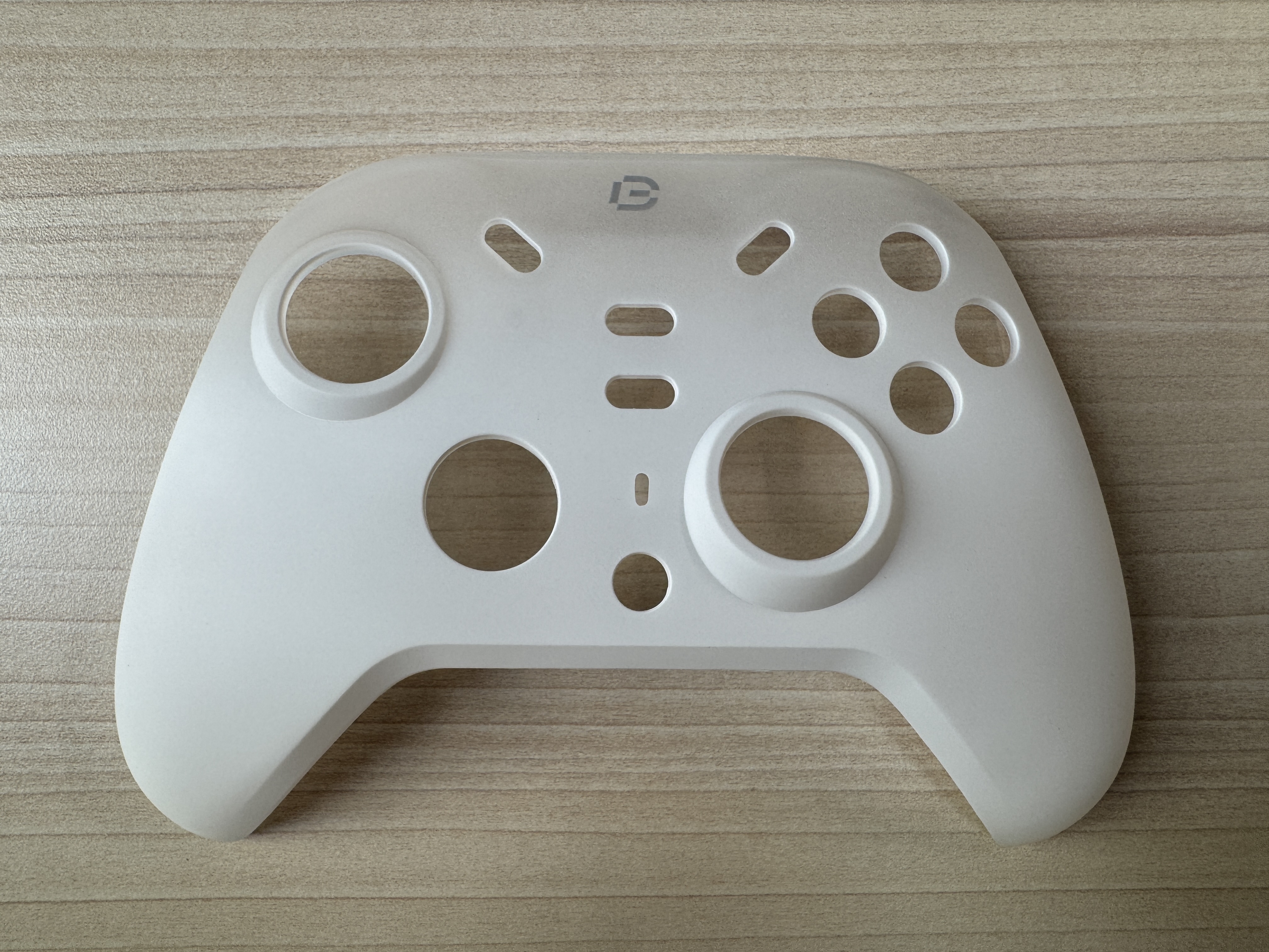 手把上蓋呈現出類似磨砂玻璃的觸感,但又再更加細膩一點,指尖觸摸時略帶的沙粒感是它的特色,在防滑性與舒適度之間擁有絕佳的平衡,同時也具備不易沾黏指紋與汙漬的特性;翻到背面,則能看到清楚的防滑顆粒設計,防止遊戲途中因手滑而不小心摔落手把。