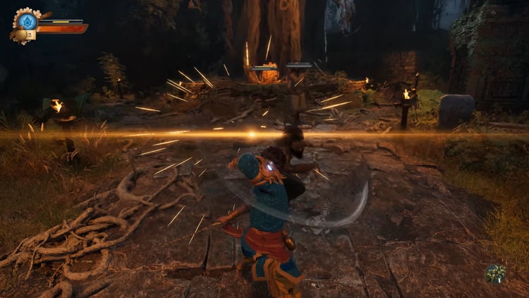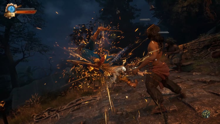 於本次 12 分鐘的實機預告,不只揭漏了新場景「海島遺跡」,也能窺見更多的戰鬥畫面,例如玩家還可以遠程丟出迴旋鏢,在命中時瞬間瞬移至敵人面前;又或是當格擋或攻擊,致使敵人失去平衡時,還能如《隻狼》一般進行處決,只是部分處決動作並非純粹帥氣而已,還有裝逼、挑釁的成份存在。