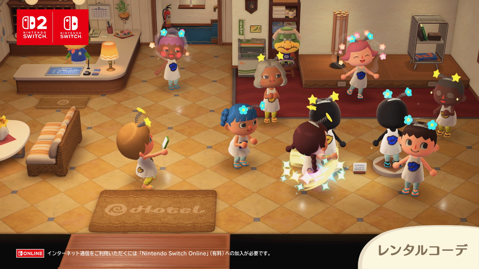 針對所有已擁有原版 Switch 的玩家,任天堂將開放完全免費升級至版本 3.0。這次更新內容相當豐富,新增項目包含由河童「航平」一家經營的度假飯店、玩家自訂島嶼儲存最多三座島、線上多人連線支援升級、存物空間大增至最多 9,000 個物品(包括樹木、灌木、花草皆可納入)等。此外,此次更新還加入了與《樂高》、《薩爾達傳說 王國之淚》、《斯普拉遁3》等品牌的合作物件與 Amiibo 功能擴充。