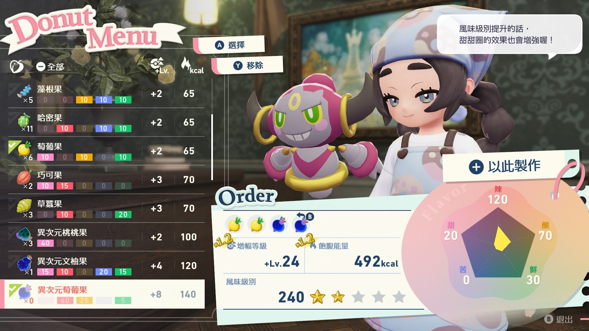 給胡帕的甜甜圈會根據製作時使用的樹果產生各種效果,包含提升夥伴寶可夢們的力量等等。其中,只要使用在異次元密阿雷裡發現的貴重的「異次元樹果」,就能製作出比使用其他樹果製作時更強效的甜甜圈,這將會成為與強大的「異次元等級」寶可夢們對戰時的關鍵。借助安馨兒和胡帕的力量,前往異次元進行調查吧。