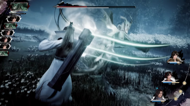 從畫面中可見,遊戲採回合制戰鬥,同時融入類似《光與影:33 號遠征隊》的即時戰鬥元素。當敵方發動攻擊動畫時,玩家可抓準時機執行類似「格擋」的操作。也因為這一設計,加上整體 UI 設計風格相似,於是便有不少海外社群與中國玩家戲稱本作為「仙劍奇俠傳 33」。
