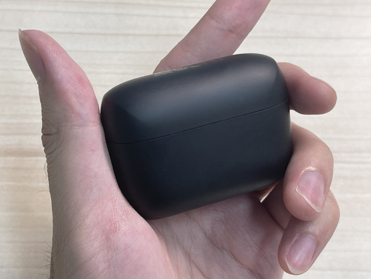 盒身外觀為帶點光澤的霧面黑,看起來低調又有質感。不過相對地,盒身表面也很容易留下指紋或水漬等垢痕,要是剛好手油油或是出手汗時摸到,即使是黑色,也會因反光而顯得明顯,需要時不時擦拭保持清潔。所以整體而言,木桃編對充電盒的設計並不是很滿意。