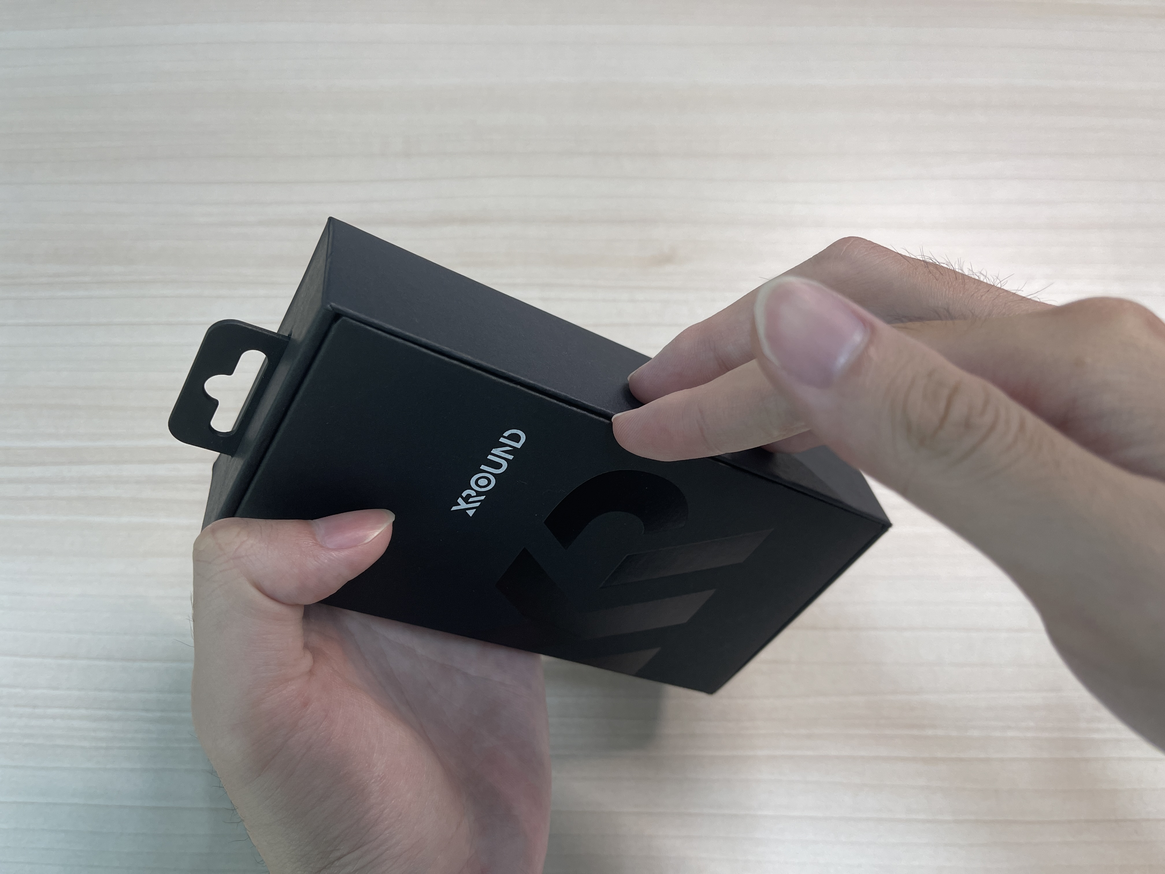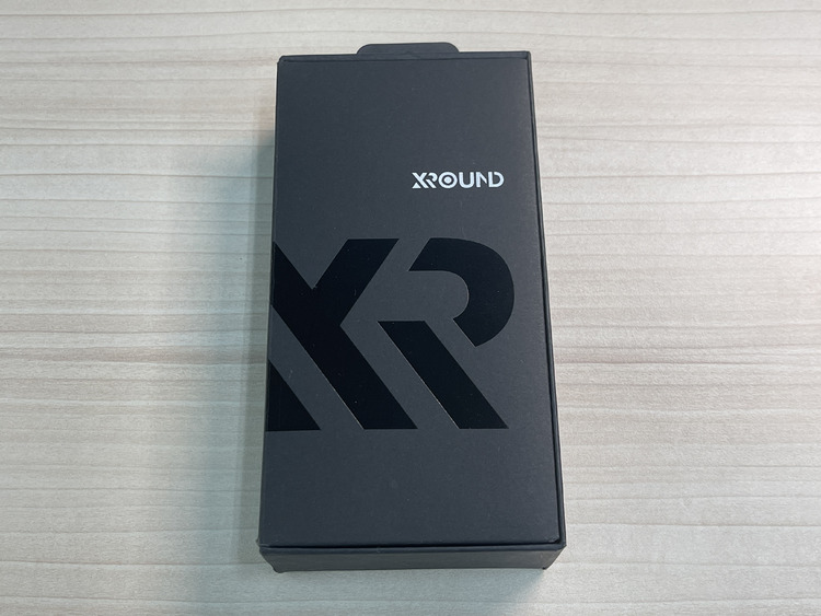 把外皮向上抽離後,內部可見印有 XROUND 品牌 Logo 的全黑盒裝。整體尺寸比預期來得更大,約有一般手機的大小,考量耳機本體本身並不佔空間,也不禁讓人好奇,這些多出來的空間到底收納了什麼內容物。