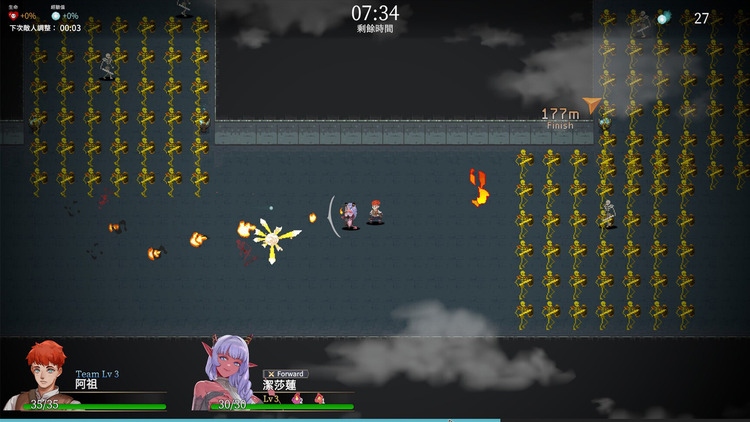 有別於一般《倖存者》類型的清版戰鬥,本作進一步衍生出獨特的「三人小隊」作戰系統,成為夥伴的外族娘們會隨著鼠標移動,環繞在玩家身邊協同作戰。