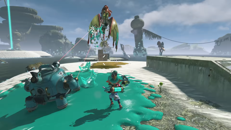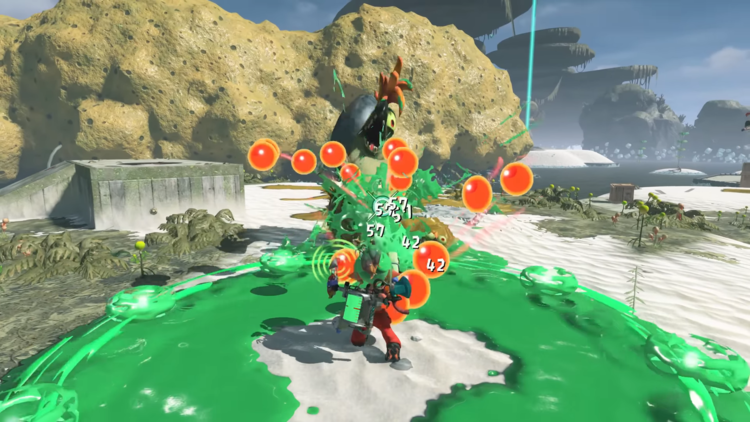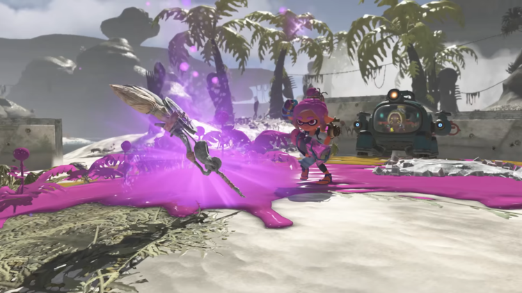 《斯普拉遁 塗擊隊》的核心玩法延續本傳,同樣採第三人稱體感射擊,但最大差異在於本作主打「PvE(人機對戰)」。玩家將化身為「機械師」,與魚漿隊三人組 —— 莎莎、曼曼、鬼福等人一同踏上充滿原始森林氣息的海島,在開放式大地圖中展開冒險。