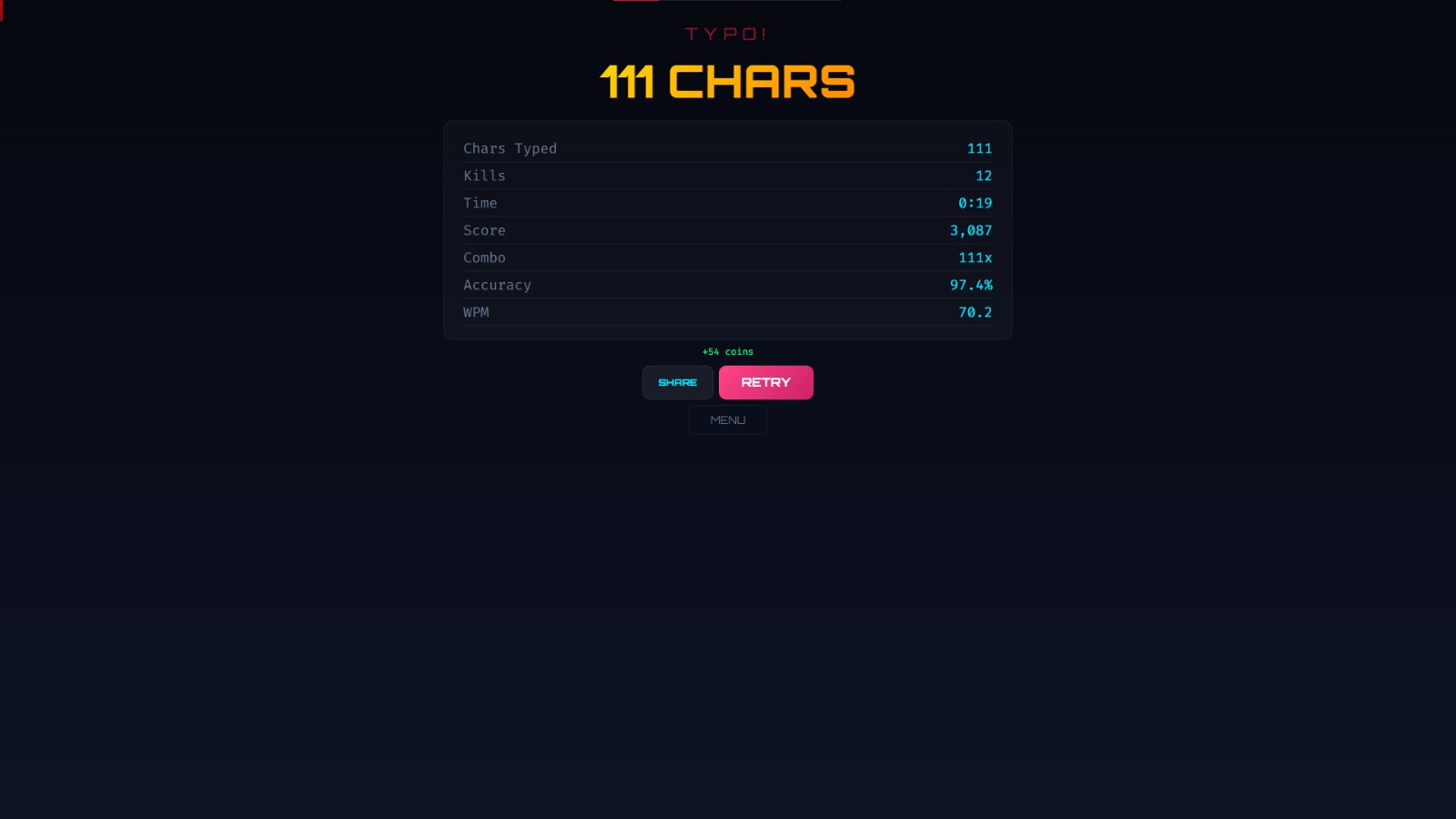 若想追求極致的精準,則可以嘗試「準確模式」,在那裡只要打錯一個字母便會立即宣告失敗。此外,「時間競賽」則是在固定的倒數時間內壓榨玩家的極限語速,讓人在與時間的賽跑中不斷刷新自己的最高紀錄。